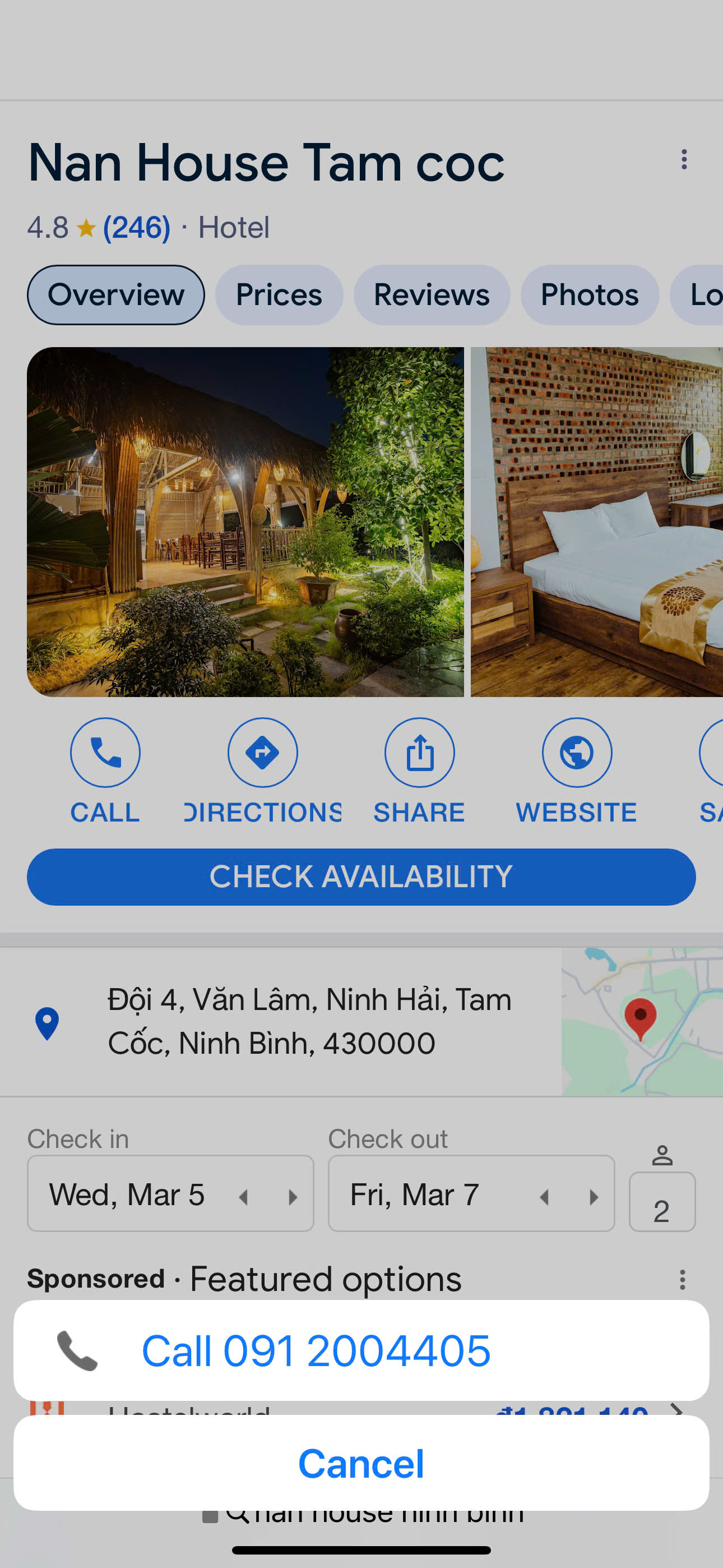 1/ Gọi ngay cho nhà Nan theo số điện thoại trên trang google (như hình dưới đây) để check trước khi chuyển tiền.